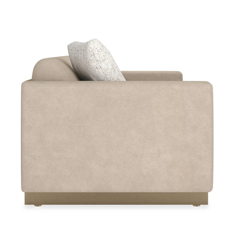 Features: Upholstered sofa.Metal finish in Whisper of Gold.