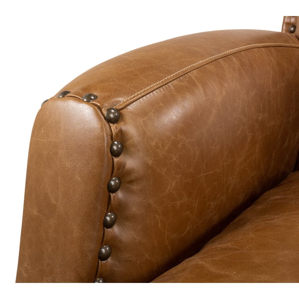 Interesting from any angle, one of our favorite leather chairs will do nicely in your casual family room or your library. Pure Aniline top grade cow leather. Avoid direct exposure to sunlight / heat some color variation is common and acceptable on vintage leather.