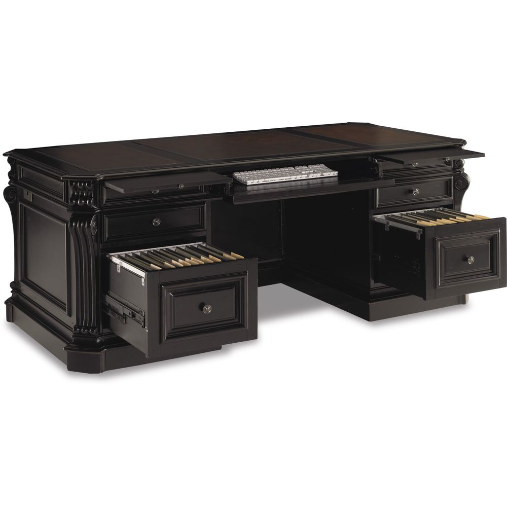 Dividers in middle drawer; left and right pedestal lock which locks the middle and file drawer.