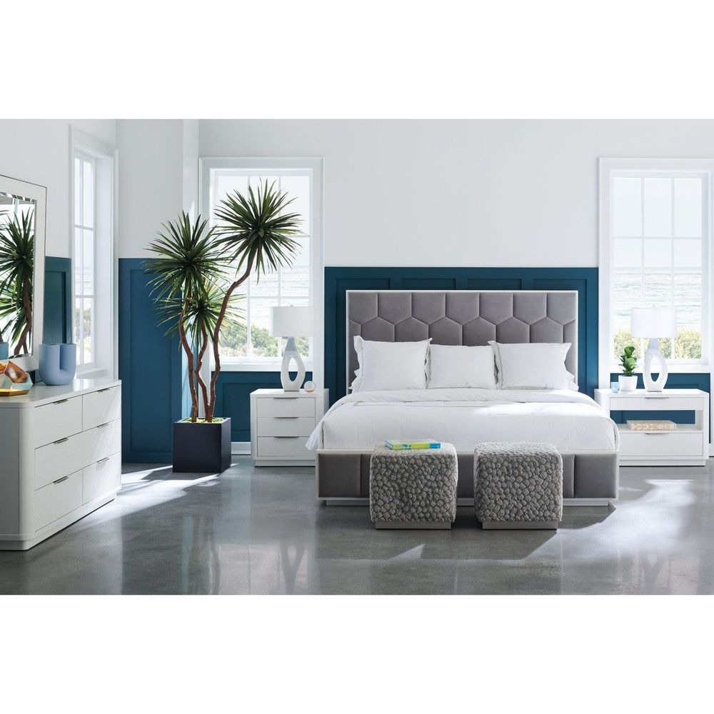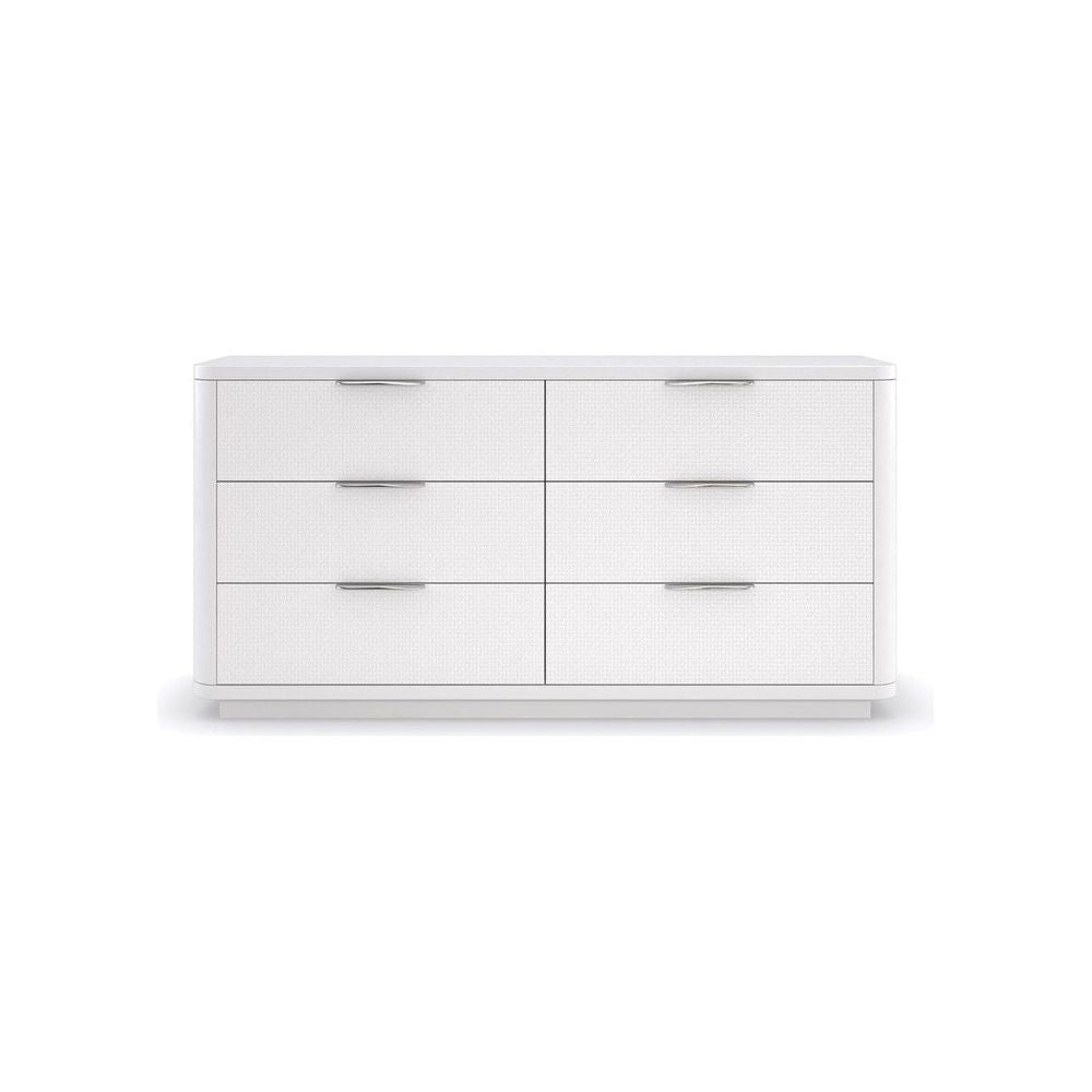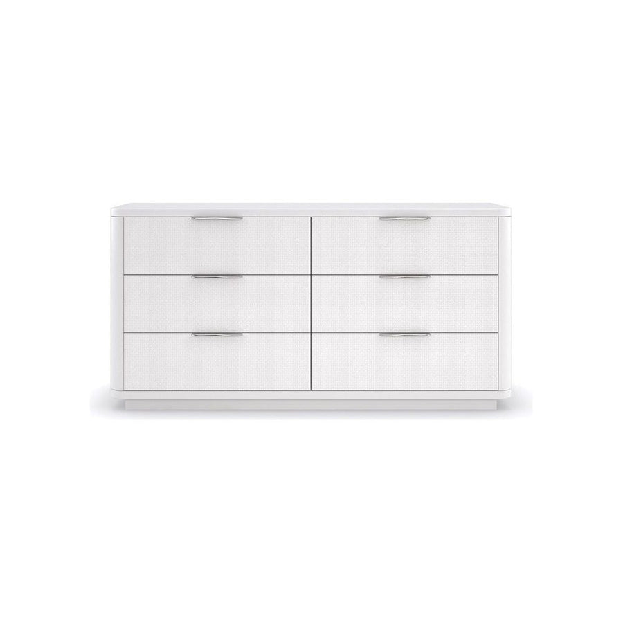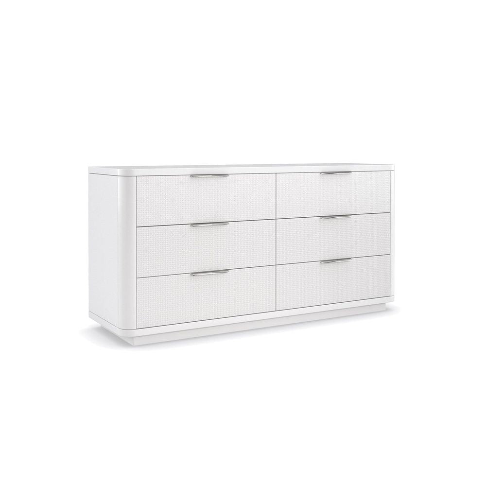 With gently rounded edges and a welcoming texture, this spacious six-drawer dresser is quietly captivating in a Cloud White finish. Carved drawer fronts feature a woven mini-tile motif and finger-cup pulls to keep the look clean. Style with our In Touch and Touch Base bedside tables to create a calming retreat for yourself or guests.