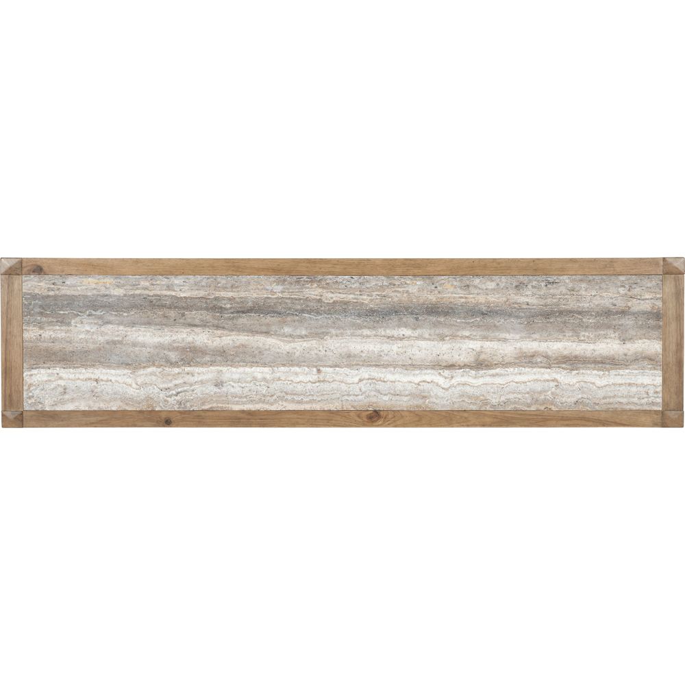 - Material: Pecky Hickory and White Oak Veneers with Honed Gray Travertine
