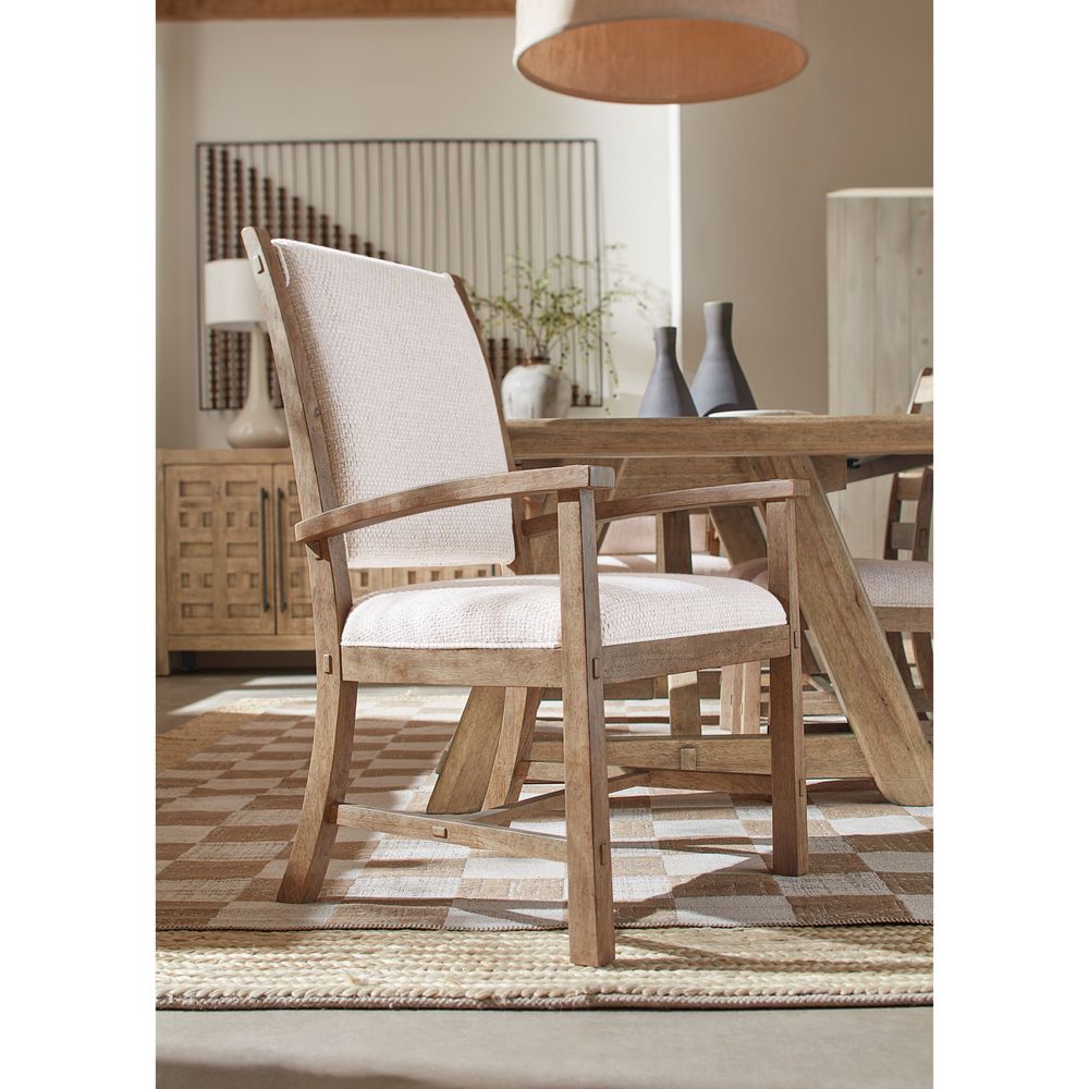 Description: Capture the laid-back organic elegance of California wine country with the Terrace Row Upholstered Arm Chair. Offered in a craftsman-like style with a wood frame and dowel trim accents finished in the light-and-airy Sonoma finish, it has a fabric seat and back covered in the White Zin fabric.