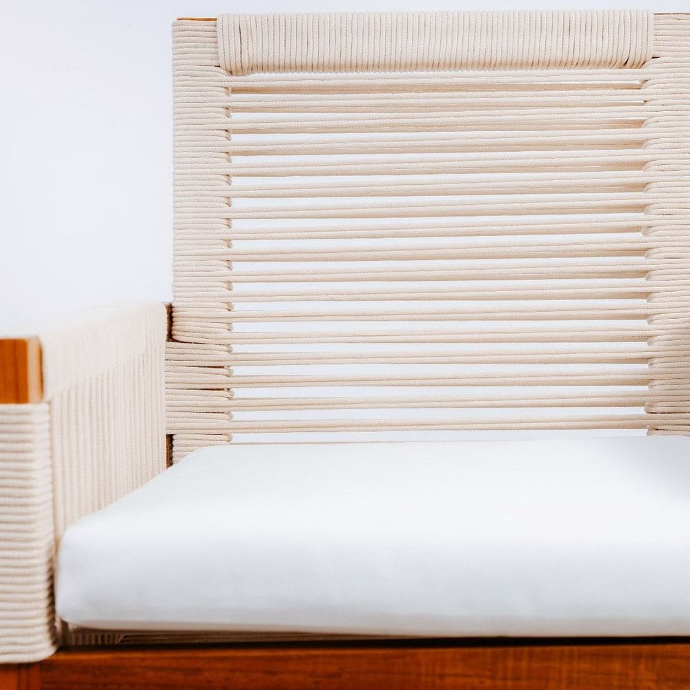 - Materials: Teak Wood, Rope, Fabric, Foam