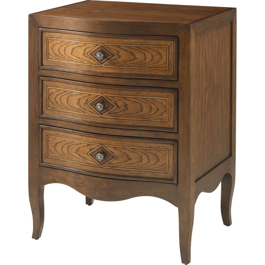 - Serpentine Front above Three Short Panel Inlaid Drawers with