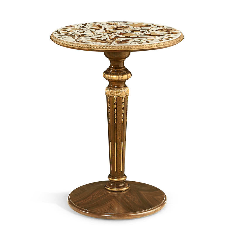 - Material: Mahogany Solids, Various Marquetry Veneers, Resin, Gold Leaf