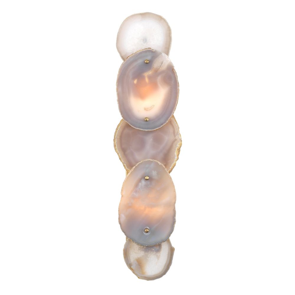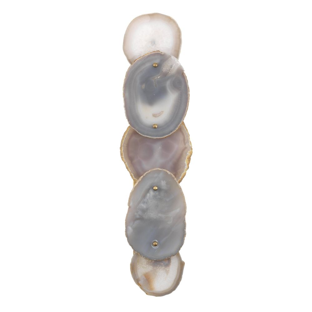 Five unique slices of natural agate stone are individually arranged to create extraordinary pieces of art. Embrace this wall sconce's individuality and you will have a truly one-of-a-kind piece on your wall.