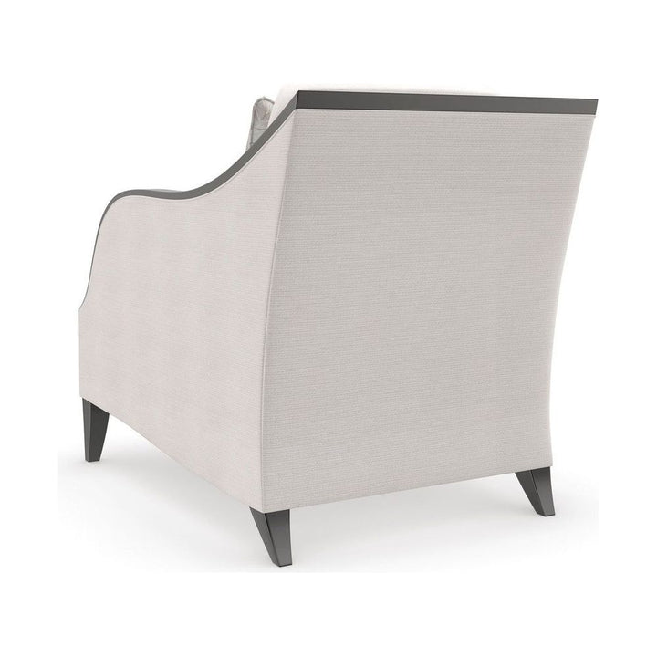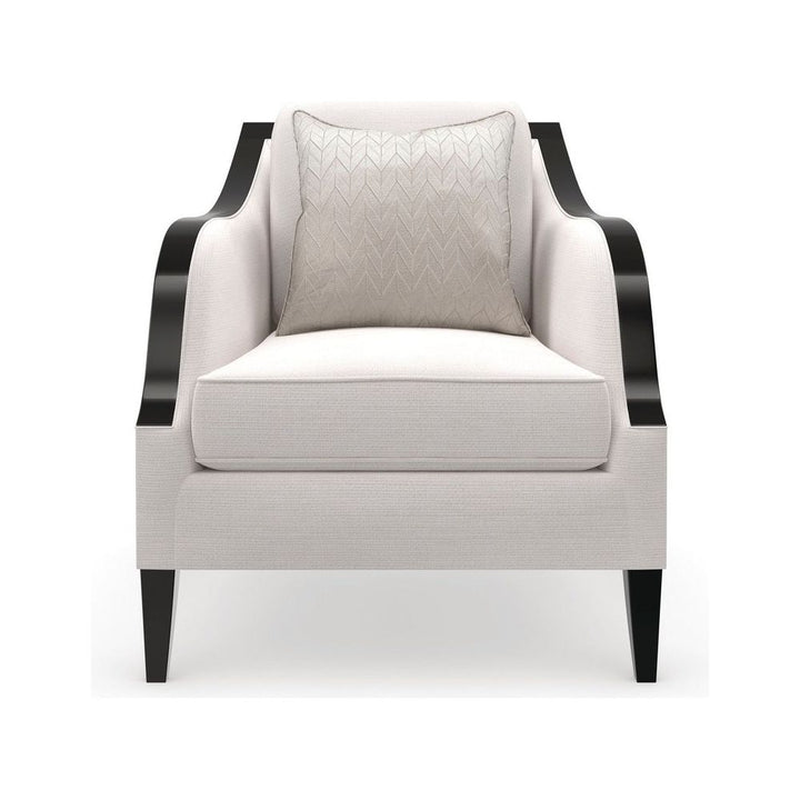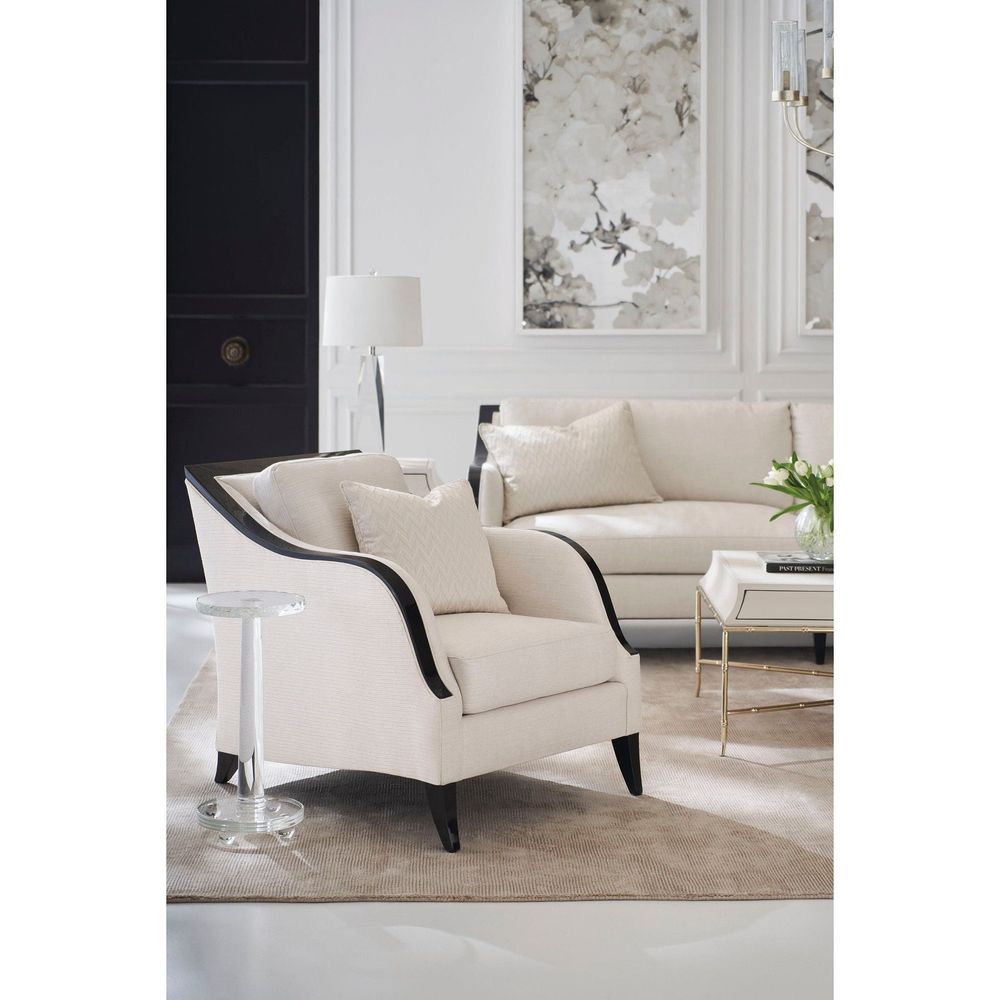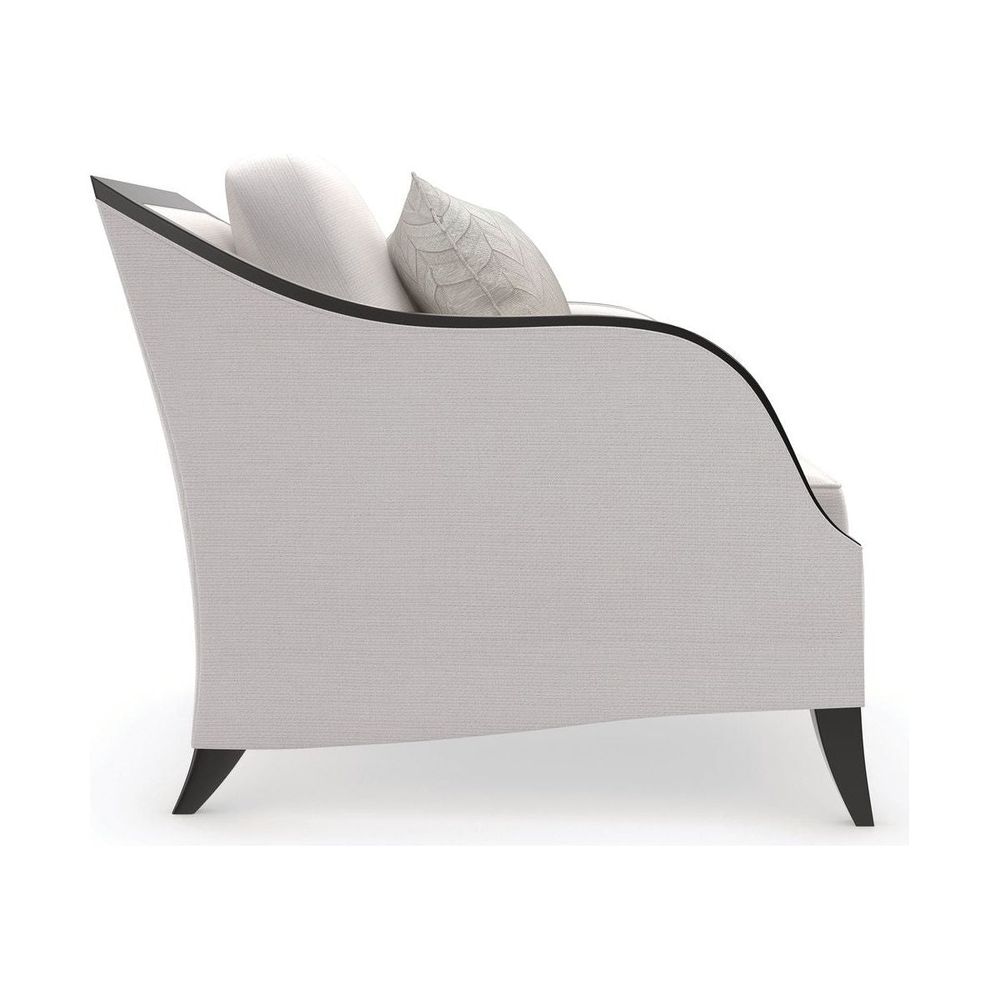 Like our Pitch Perfect sofa, this sleek track arm style is elegantly defined by an exposed wood frame in a richly contrasting, Chocolate Truffle finish. Introduces a classic silhouette, finely tailored in a cream basketweave and accented with a kidney back pillow for added comfort.