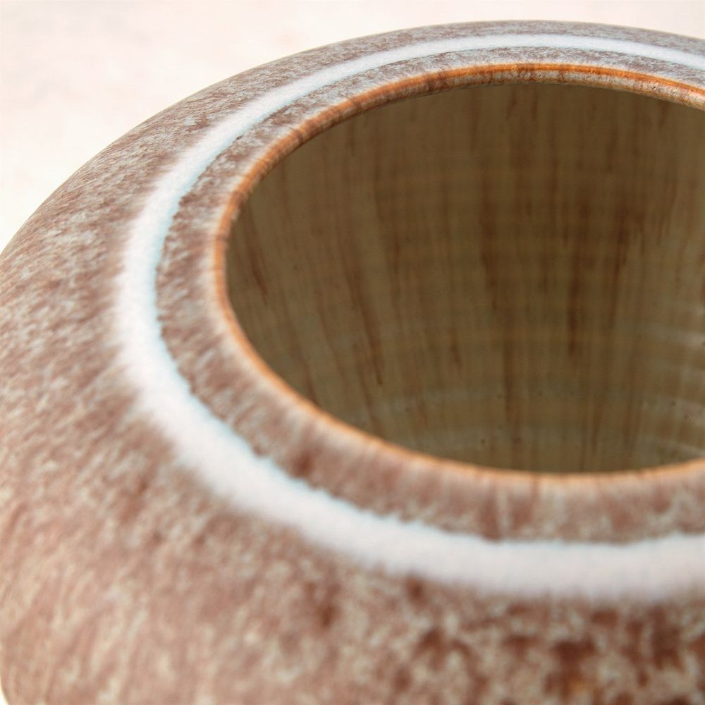 Description: Our Tuscan Collection Soft Stripe Collection of ceramics add a curated look to any home. Handmade in Italy, these feature earth-tone bodies accented with blue/aqua and off-white stripes. Available in 4 different shapes and sizes.