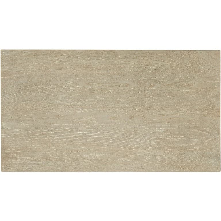 - Finish:Light Wood,Terrain: a soft, taupe finish on oak veneers. Distressing includes dry brushing. Champagne colored bar pull hardware and metal base.