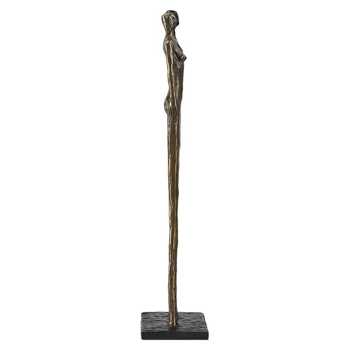Solid cast iron sculpture features intricate molded details in a hand applied antique brass and rustic dark bronze finish.