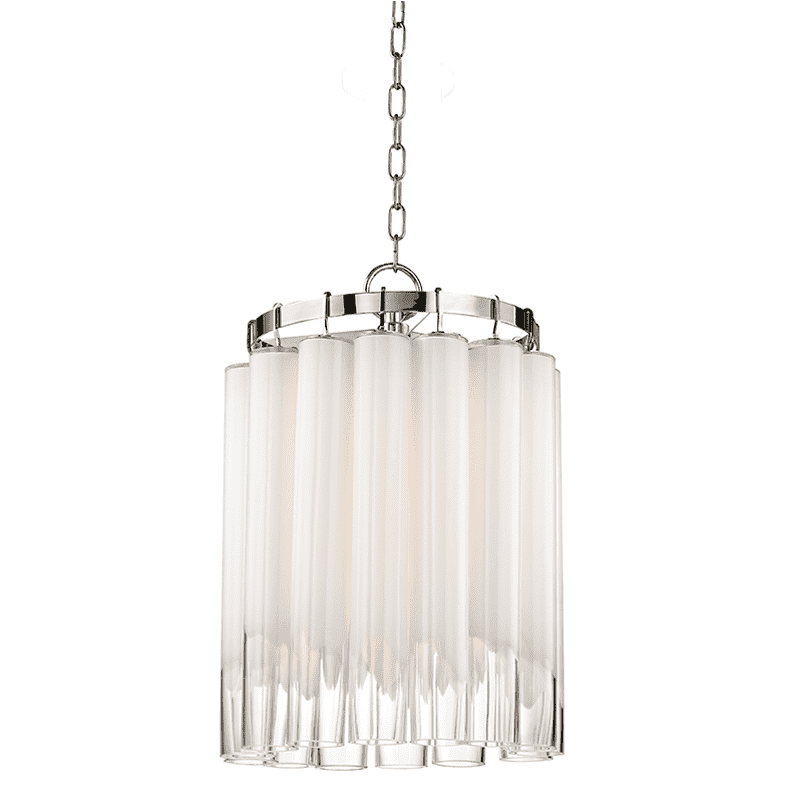 Each glass tube in our Tyrell family is purposely imperfect, frosted opal toward the top before raggedly giving way to perfect clarity by the base. Outer gloss gives them sheen, making for a mysterious and alluring diffusion effect as light comes blushing through from candelabra bulbs set perpendicular to each layer of glass tubes. Tyrell adds a 21st-century touch to a Modernist classic.