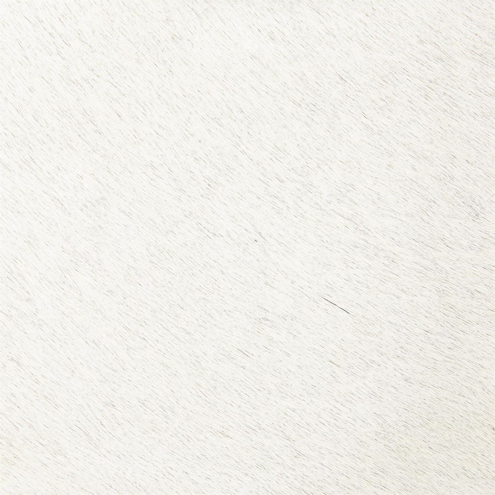 Description: A cocktail table-sized hair-on-hide ottoman is functional as well as beautiful. Use it for seating, as a coffee table with a large tray, or just to put your feet up! Covered in a luxe ivory hair-on-hide with top-stitching, the round cushion sits on an antique brass-finished iron base with four tapered legs.
