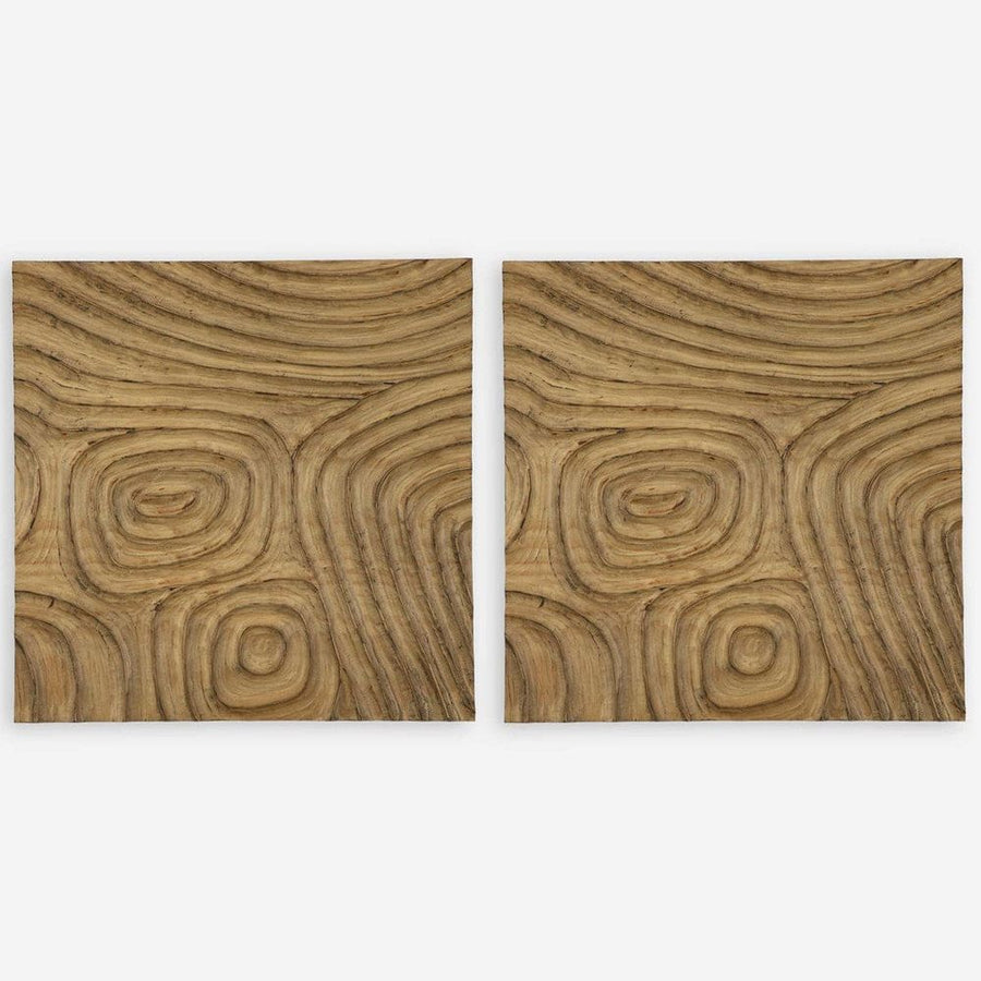 Description: The Tunnel Vision wood wall decor features two coordinating panels with hand carvings creating a dimensional look. Crafted from solid pine in a natural finish highlighting the natural grain patterns.