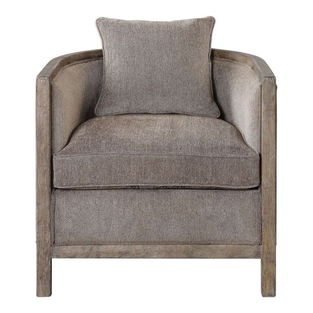 Versatile Tub Chair With A Wonderful 360 Degree View. The Softly Weathered Exposed Hardwood Frame Is Lightly Washed In Gray To Blend With The Shimmering Gray Chenille Neutral Flaxen Fabric. Great To Float In Any Space. Seat Height Is 18