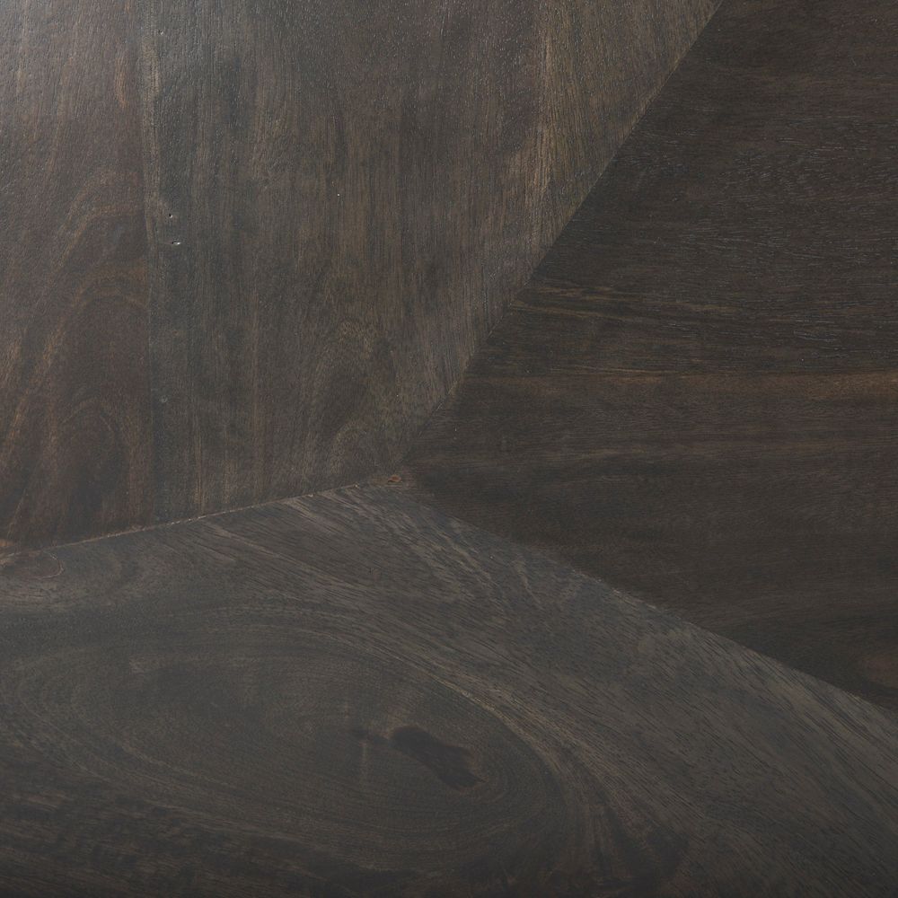 Feature#2: Meticulously crafted from dark brown stained Indian mango wood, the Victoria is a substantial piece of furniture and is built to last for years to come. This piece is supported by four, uniquely designed iron legs finished in an antiqued-gold tone that not only add to the visuals of the piece but also contributes to its sturdiness and stability.
