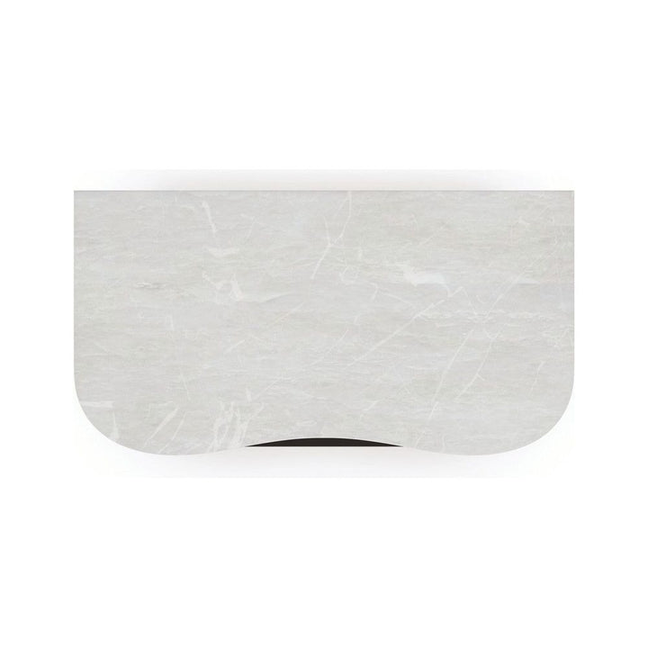 Features: White Rhino marble top.End panels and drawer fronts in Moonstone.Three drawers with soft close undermount guides.Plinth base in Seal Skin.Drawer interior in UV Linen. Hardware in Deep Bronze.