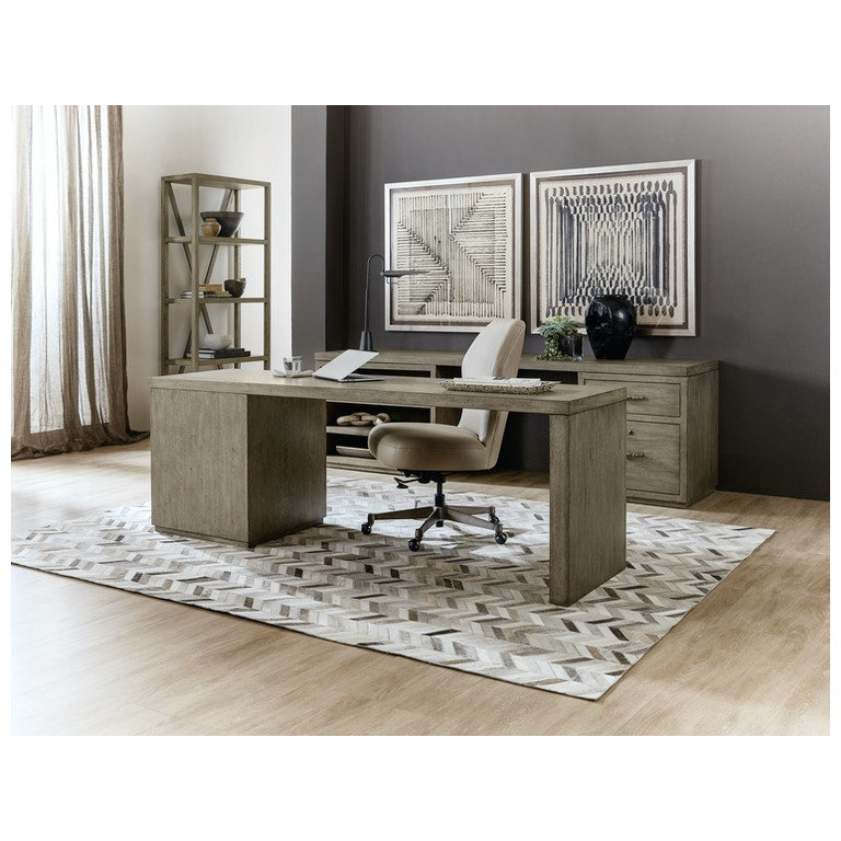 Capturing the essence of nature's organic color palette and the aura of a rustic mountain cottage, Hooker Furniture introduces the Linville Falls collection. The whole home collection is designed for younger consumers looking for casual and contemporary furniture. Characterized by its rustic, weathered finish and clean lines paired with organic grain patterns, Linville Falls is constructed with split oak solids and veneers and has an overall organic aesthetic. It is featured in a soft Smoked Gray finish mixed with a Charred Black finish that is achieved through Shou Sugi Ban, a Japanese technique that creates an elegant burnt wood look. Its moderate scaling and fresh silhouettes offer a refreshing juxtaposition mixing old with new.