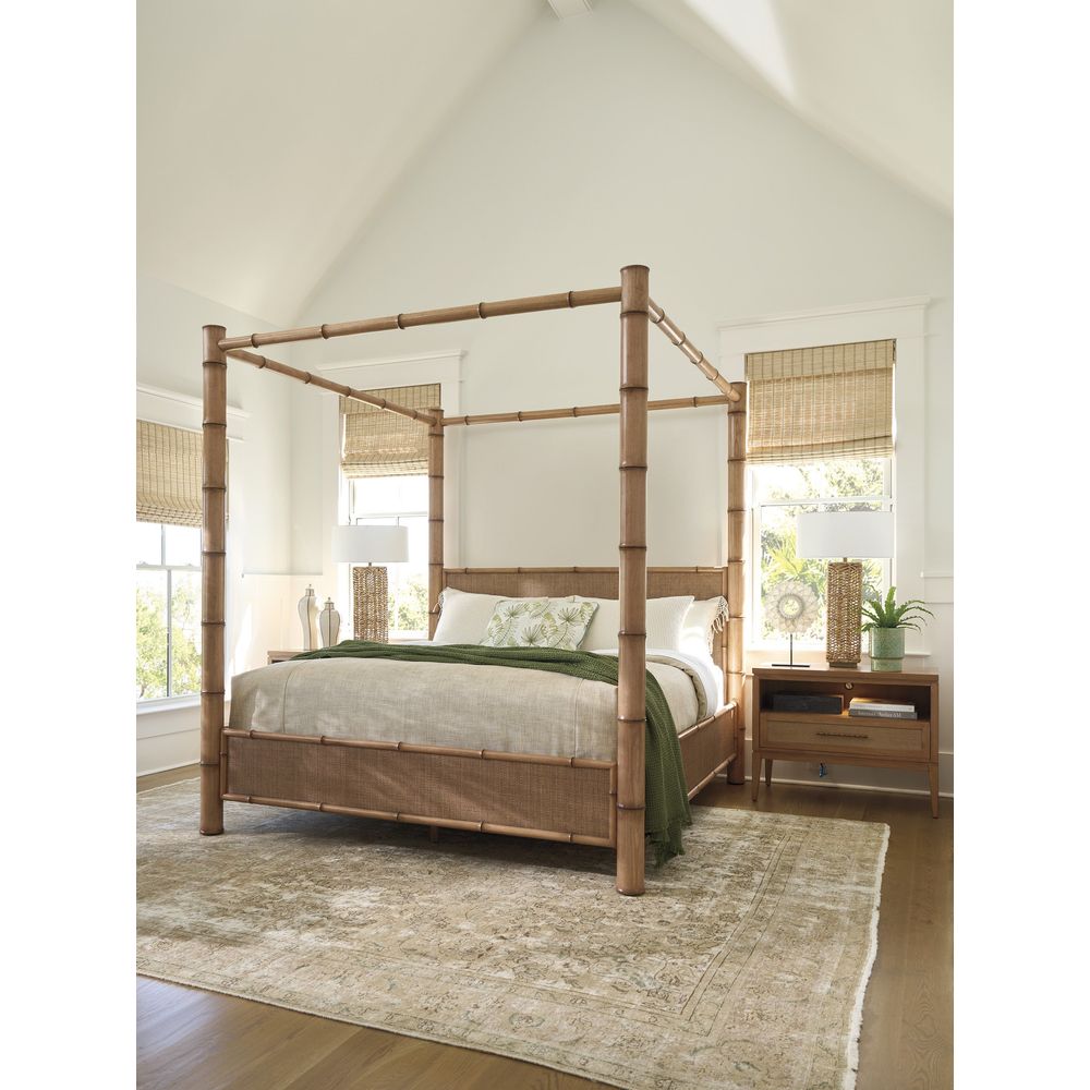 Marketing Copy: Capturing the refined, yet laid-back West Indies vibe of Key Biscayne, designs are crafted from Alder veneers in a light driftwood coloration. Drawer fronts are clad in woven raffia, complemented by custom hardware in an elegant burnished brass finish. The collection is a masterful blend of natural materials, including leather wrapped rattan, bamboo veneer, braided Abaca, Capiz shell, split rattan and honed travertine. It appeals to both the eye and the touch, inviting relaxation and evoking the spirit of effortless coastal living.