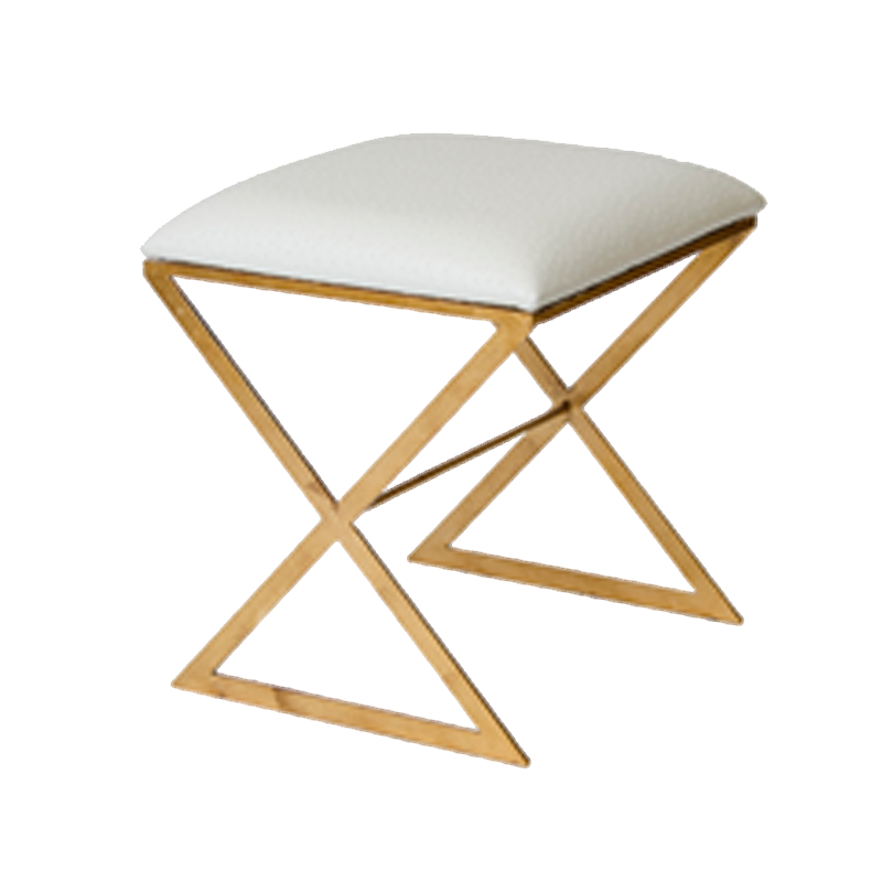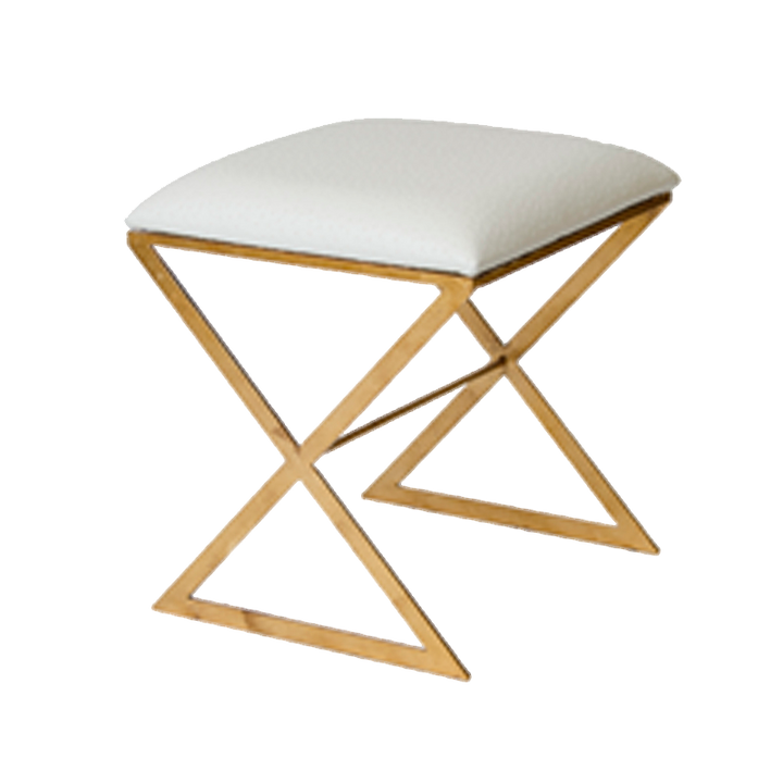 Description: X marks the spot for style! The X Side stool, with its gold leaf frame and cushion in luxe cream ostrich upholstery is a treasure waiting to be discovered. From occasional seating stored neatly under your console or a permanent seat at the table, you'll find this little gem has many applications making it a treasured addition to any room in your home.