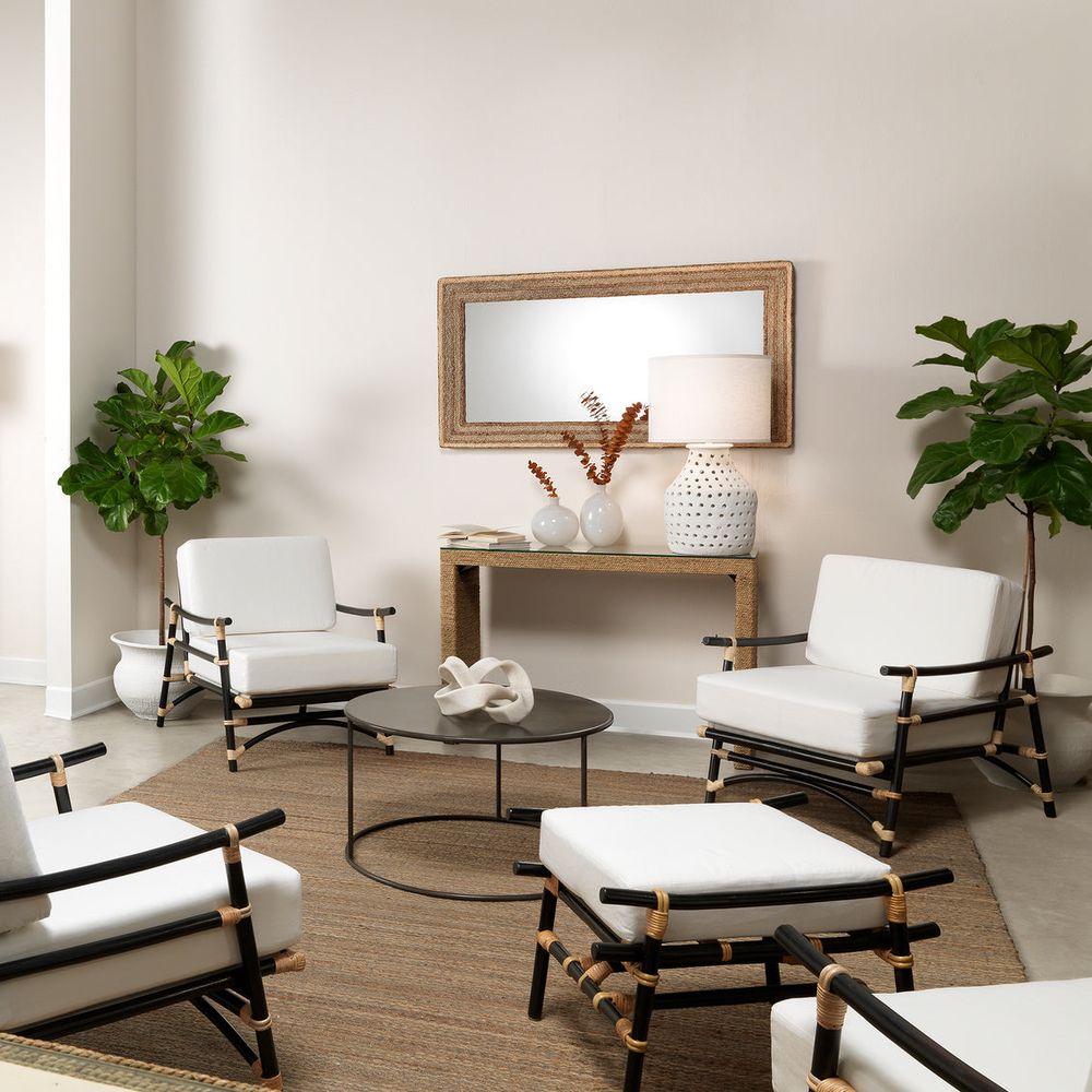 - Finish: Black & Cream Rattan w/ Off White Cushions