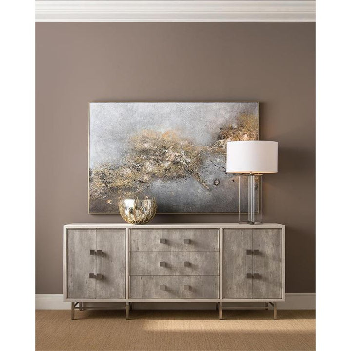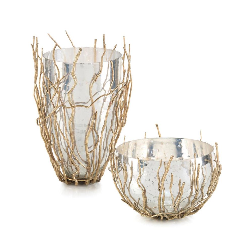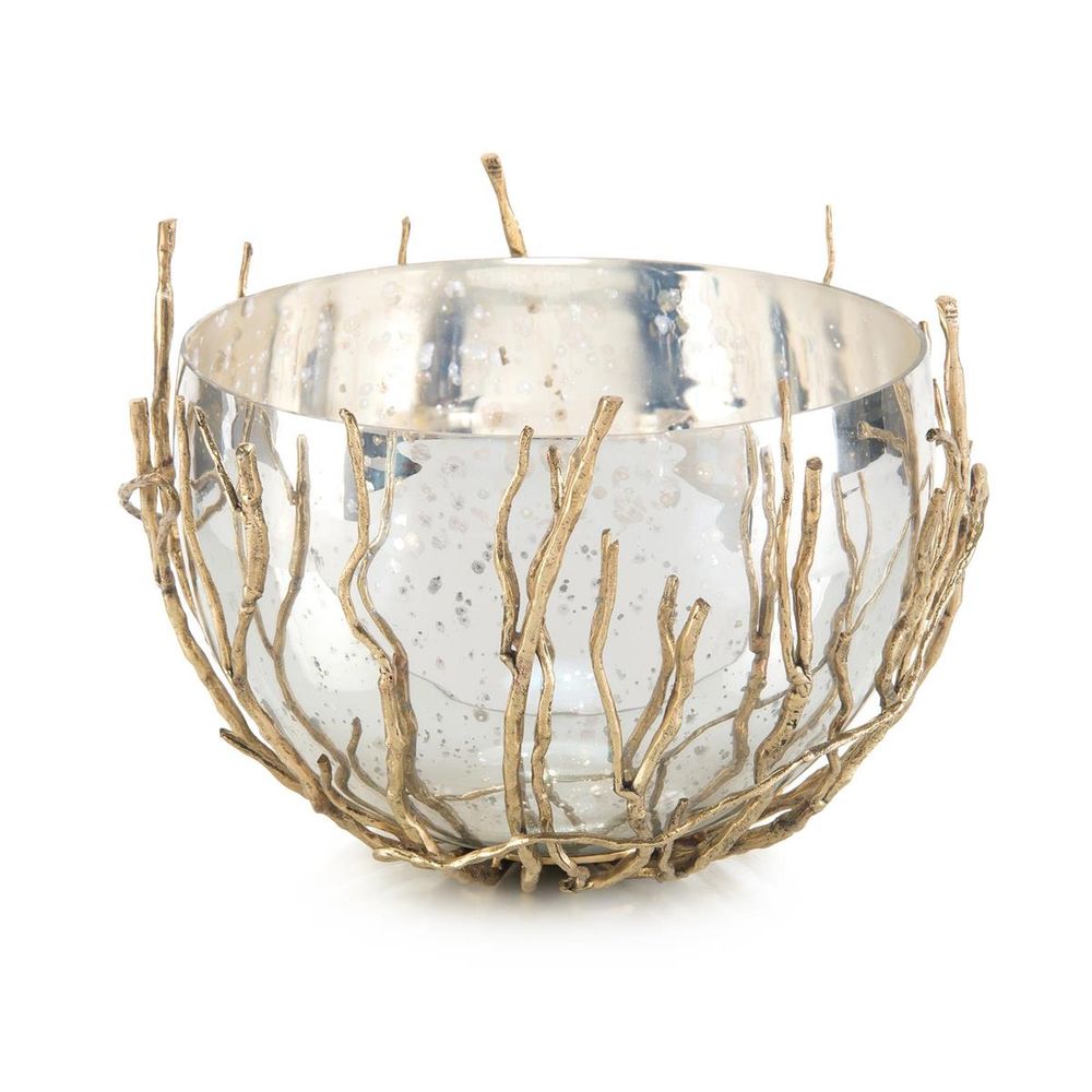 The fluidity and movement of sprouting brass saplings encase a silvered bowl. The reflection of each branch adds depth to this wonderful piece.